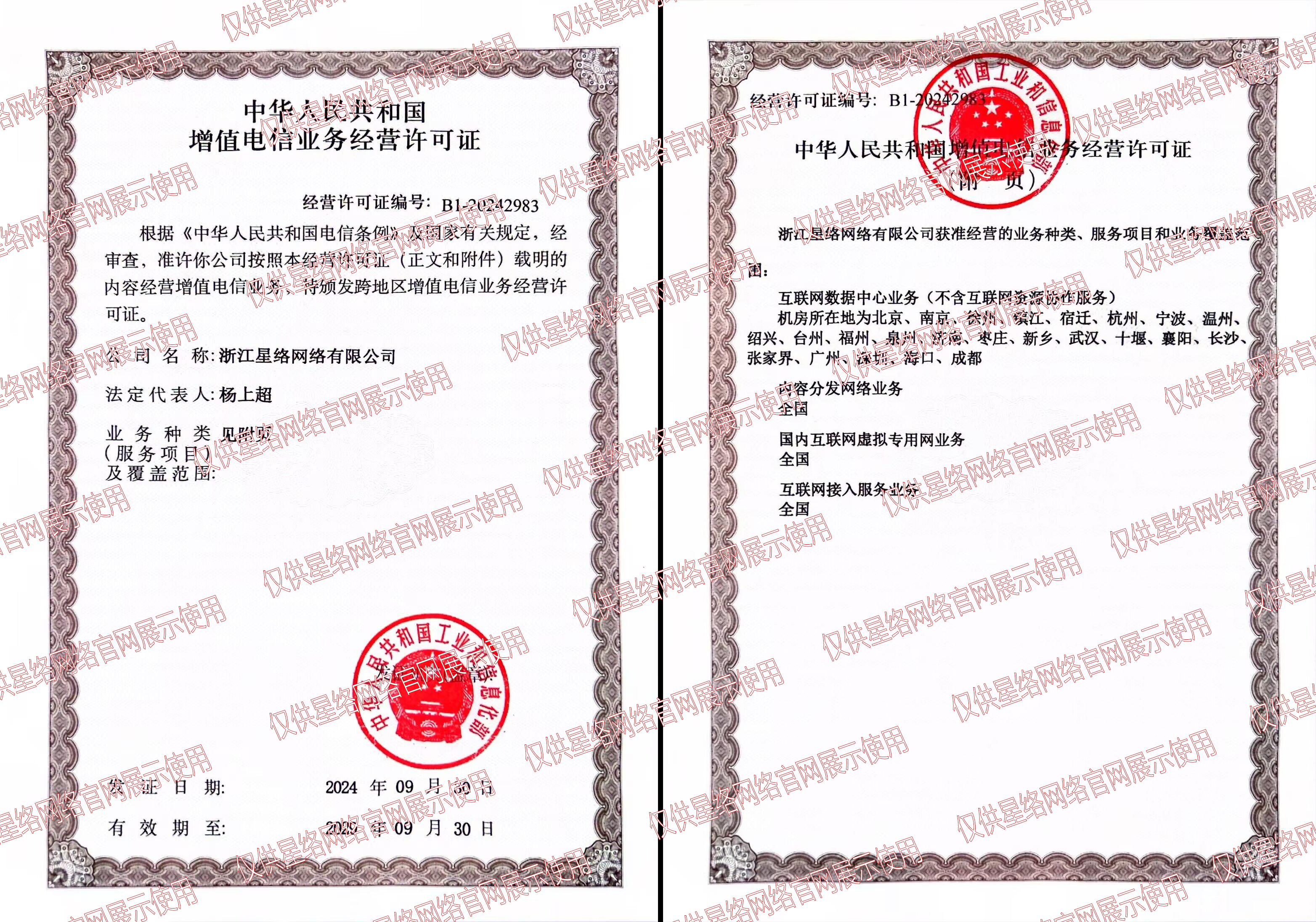 我们深知合规的重要性。星络网络持有完整的增值电信业务经营许可。